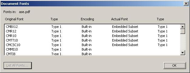 Recently many publishers have strict requirements about the fonts used in camera-ready paper submissions. Specifically, they require authors to substitute Adobe Postscript Type 1 fonts for any bitmap fonts (e.g., Postscript Type 3 bitmapped fonts, PCL fonts, MacOS bitmap fonts, Windows vector (outline) fonts). Being the Proceedings Chair of ACM PODS 2005, I set up the instructions for camera-ready submissions. In the process of editing the proceedings, I saw many common problems for authors to meet such a requirement. I wrote this page so that it may benefit other authors with similar problems. As always, comments are very welcome.