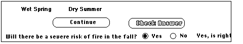The first phase of the experiment was designed to minimize the effects of the subjects' domain-specific pre-existing theories by having every subject learn the same concept. In this first phase, subjects had to learn when there is a severe risk of forest fires in the fall given data on rain in the spring and summer. An example of these data is shown in Figure 1. Subjects were given data that indicated that there is a severe risk of forest fires in the fall only when there is both a wet spring and a dry summer. This rule is consistent with the knowledge of most people who live in Southern California. In the remaining phases, when we measure the learning rate and number of errors made by subjects, novel stimuli are used as features to insure that the knowledge was acquired during the experiment.
