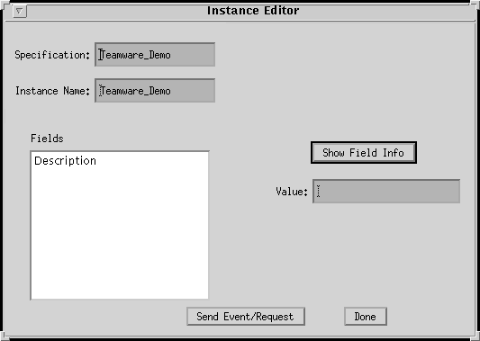 Instances can be dynamically edited the same as Categories and Specifications. Most instances are created by the Teamware Interpreter during execution but can also be instantiated by hand.