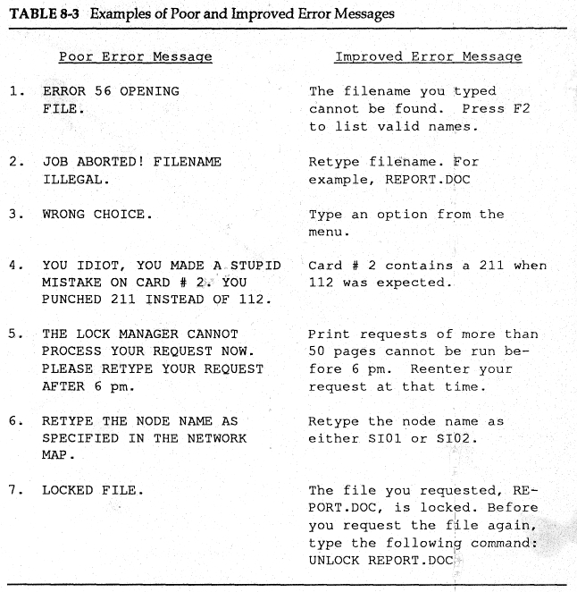 - Options that facilitate error recovery should be on by default (e.g., checkpoint files, UNDO).