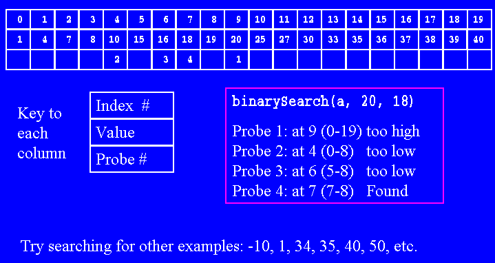 Notice how it converges on those indexes in the array that might store the