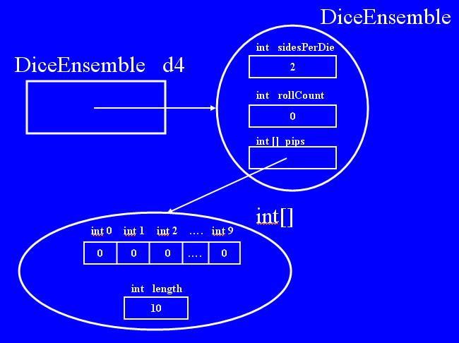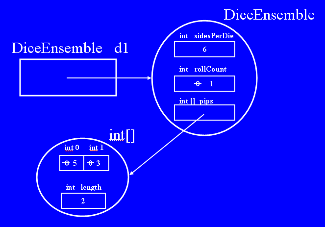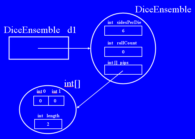 | Constructing new objects; sharing old objects; the meaning of = for references | We will now explore two different code fragments, and gain insight into the semantics of the = operator when applied to variables that store references. First, examine the following two declarations. |
