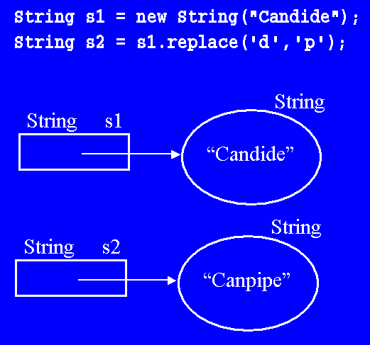 Let's contrast this situation with the following two declarations (followed by an expression statement: we could have combined the second declaration and expression statement, and equivalently written just the declaration String s2 = s1;). |