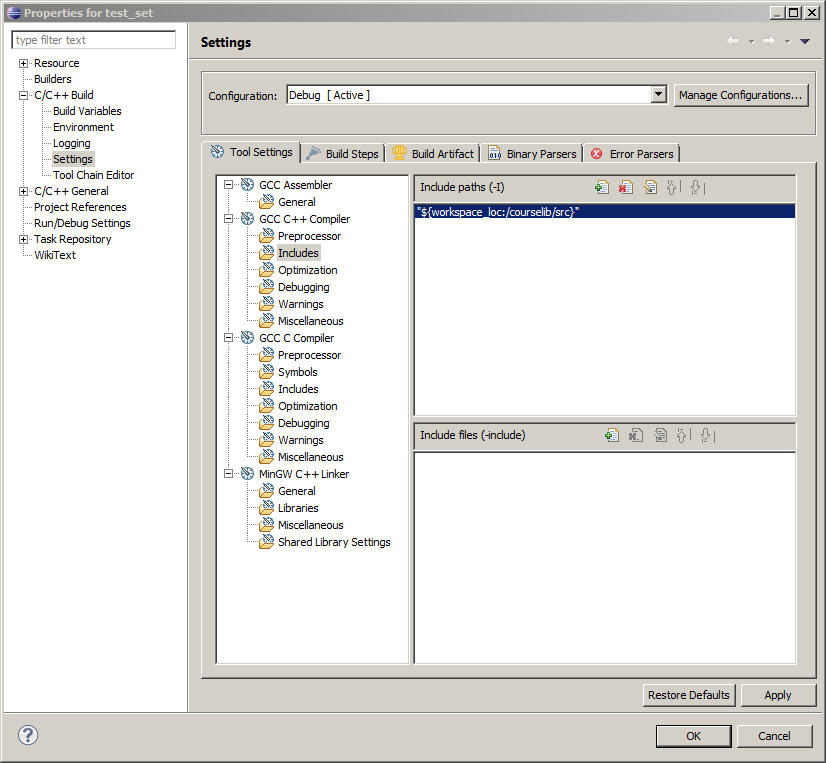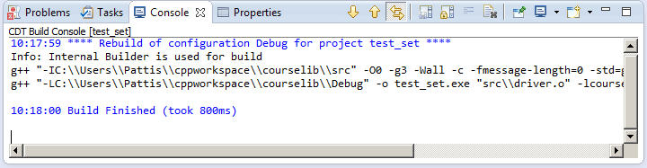 You can also look in the Debug/src and src folders to see their .o and .hpp/.ccp files respectively. Future projects will refer to the courselib folder, to find the templated .hpp files in the top src folder, and the libcourselib.a file in the Debug folder. Later in the quarter you will be asked to study the code in the .hpp/.cpp files here for your programming assignments. If/when you are done looking now, elide all these icons leaving just the courselib icon.