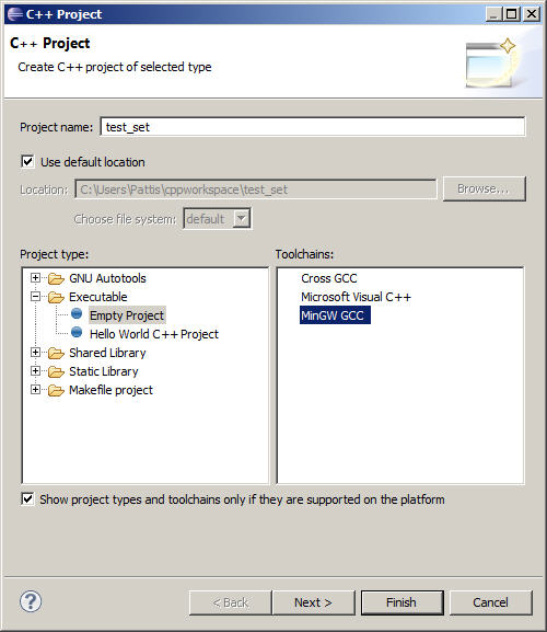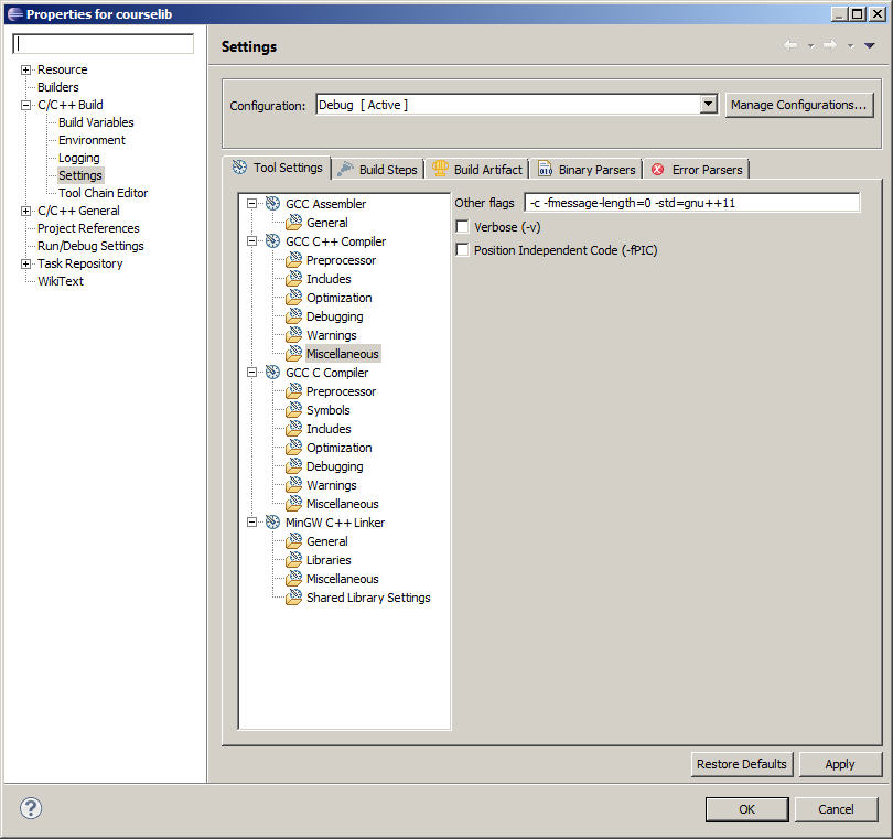 These instructions explain how to install the course library folder (courselib) in Eclipse/C++. Then they explain how to create a project that uses the library. At various times during the quarter you may be asked to replace various .hpp or .cpp files and recompile the library.