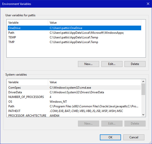 IMPORTANT: Even though you see a Path in the User variables (top part) look for Path in the lower part to change it.